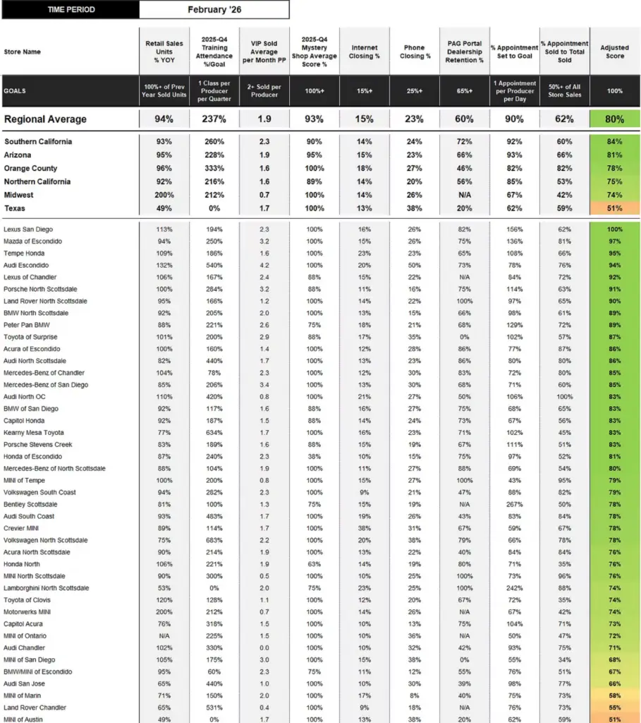 Review store, area, and regional performance, by desired timeframe. 🔻